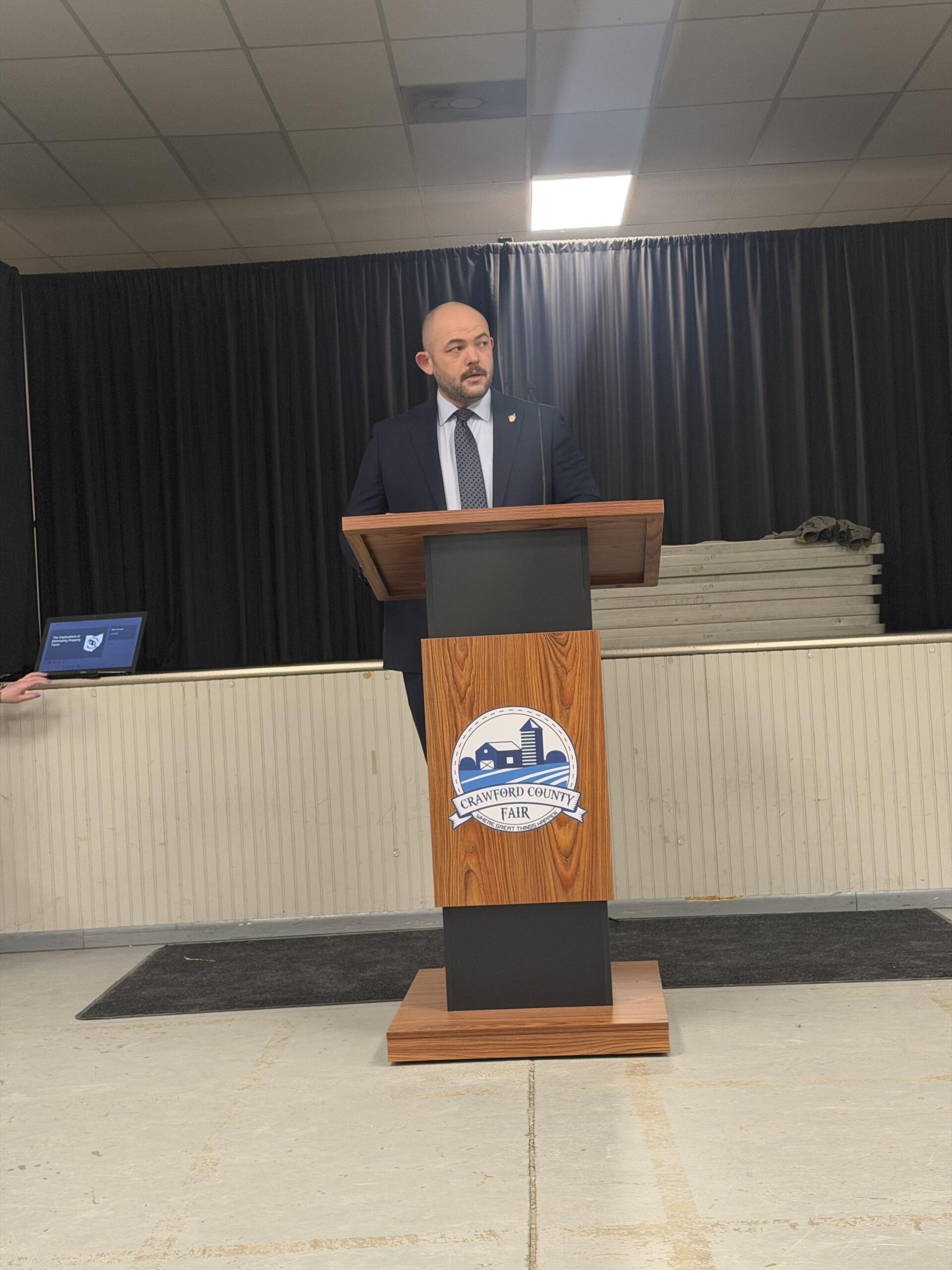Ohio Township Association’s Kyle Brooks warned Crawford County residents that a proposed constitutional amendment to abolish property taxes could eliminate $24 billion in local funding, threatening the survival of schools, police, and emergency services across Ohio.